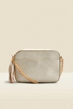 - Adjustable gold chain strap, tassel trim and sosandar logo – all the luxe details