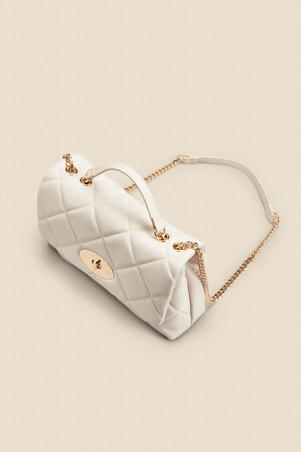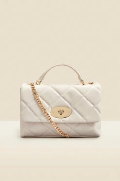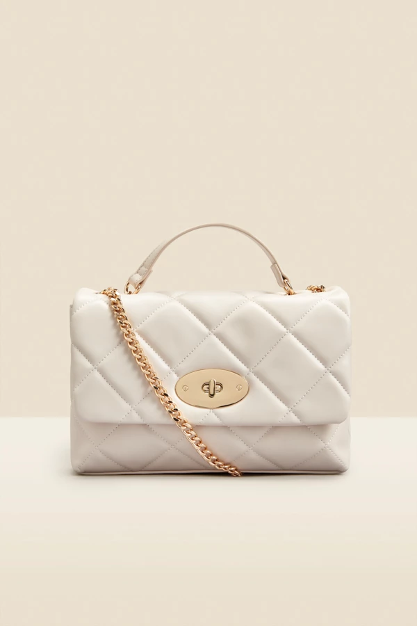 Ivory Faux Leather Quilted Clasp Detail Cross Body Bag