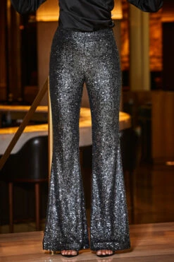 Pewter Sequin Kick Flare Trousers